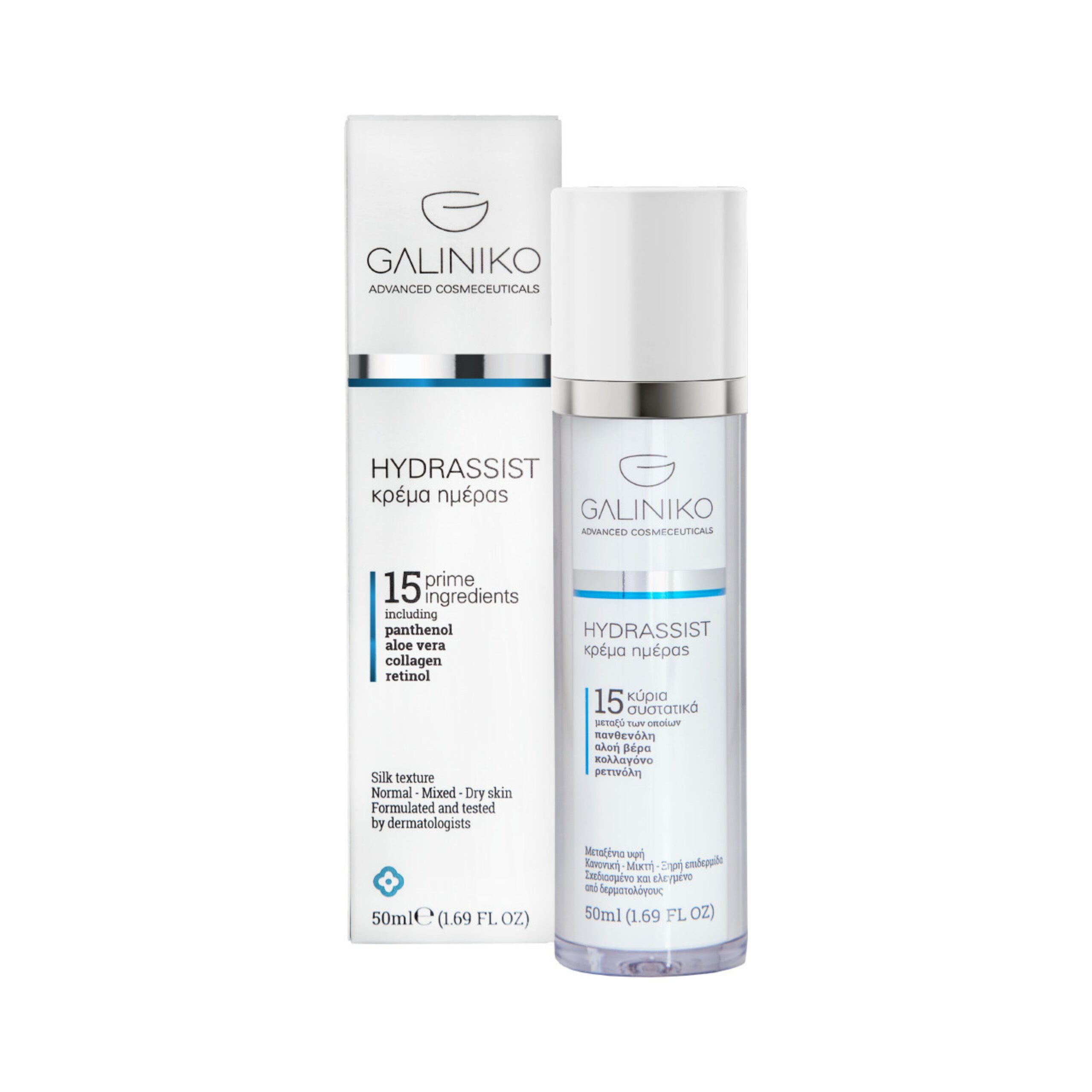 Η πρωινή κρεμά Hydrassist παρέχει πλούσια και βαθιά ενυδάτωση σε ταλαιπωρημένες η πολύ ξηρές επιδερμίδες. Μειώνει αλλά και λειαίνει τις ρυτίδες και τις λεπτές γραμμές χάρη στις πολύ ισχυρές αντιρυτιδικές ουσίες που περιέχει , καταπραΰνει την ερεθισμένη επιδερμίδα και θρέφει το δέρμα ενισχύοντας την ανάπλαση του. Συγκεκριμένα, η επιλογή των συστατικών της Hydrassist Day Cream έχει γίνει κατόπιν πολύχρονης έρευνας όχι μόνο σε ό,τι αφορά τη δράση των συστατικών της αλλά και σε ό,τι αφορά την αποτελεσματικότητα της συνδυαστικής δράσης αυτών, προκειμένου να προσφέρει συνολικό και στοχευμένο αποτέλεσμα για την πλήρη φροντίδα και ανάπλαση της επιδερμίδας.