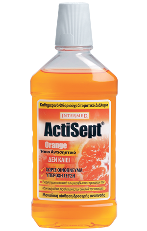 Το Actisept είναι καθημερινό φθοριούχο στοματικό διάλυμα με ήπια αντισηπτική δράση,για την καθημερινή και αποτελεσματική καταπολέμηση των μικροοργανισμών που προκαλούν κακοσμία, πλάκα και φλεγμονές των ούλων καθώς και την ενίσχυση και προστασία της αδαμαντίνης των δοντιών .