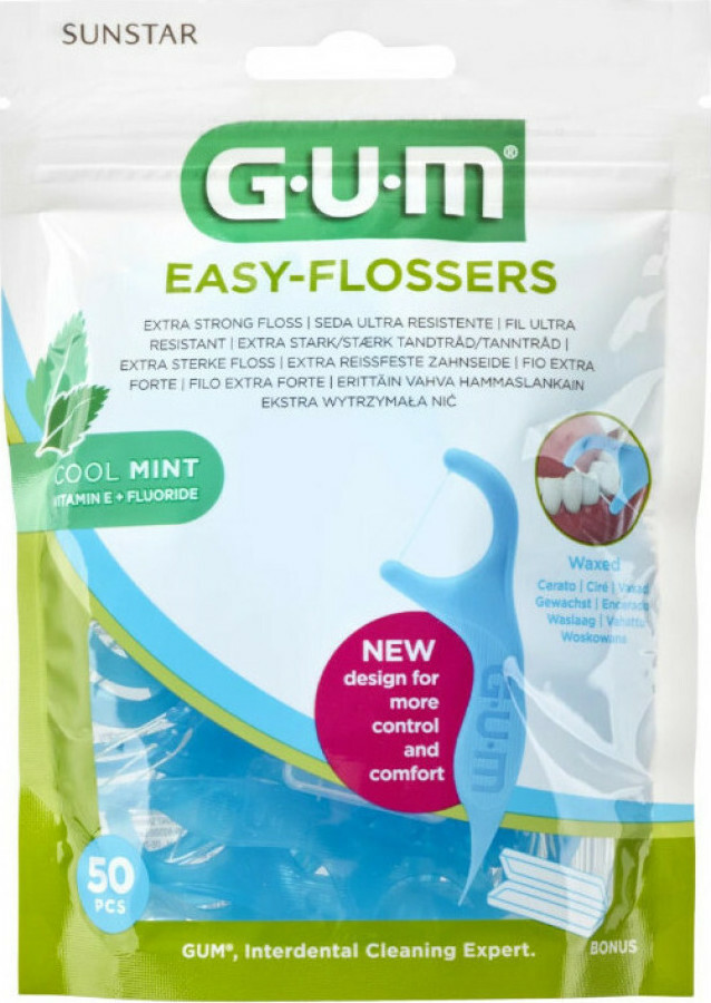 Το Gum Easy Flossers Cool Mint είναι ενα κηρωμένο οδοντικό νήμα, εξαιρετικά ανθεκτικό με φθόριο και βιταμίνη Ε . Αφαιρεί την πλακα και τα υπολείμματα τροφών, απαλά και αποτελεσματικά. Διαθέτει άνετη λαβή σχεδιασμένη ώστε να προσφλερει τον κατάλληλο έλεγχο για εύκολη χρήση.